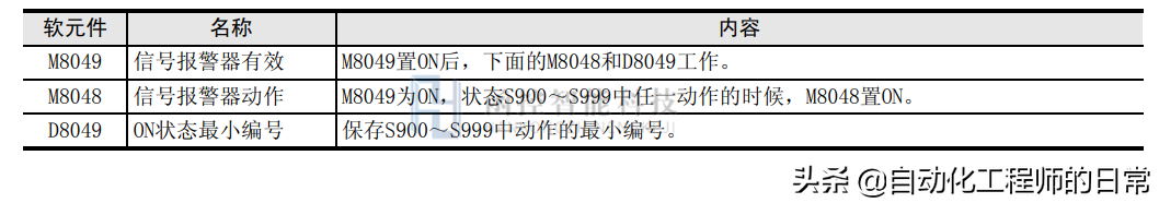 其中,信号动作时,对应的特殊继电器的信号状态如下表所示: