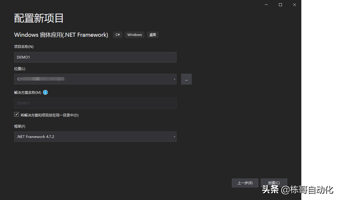 2.用C#上位机实现PLC起保停,创建项目这里命名为DEMO1