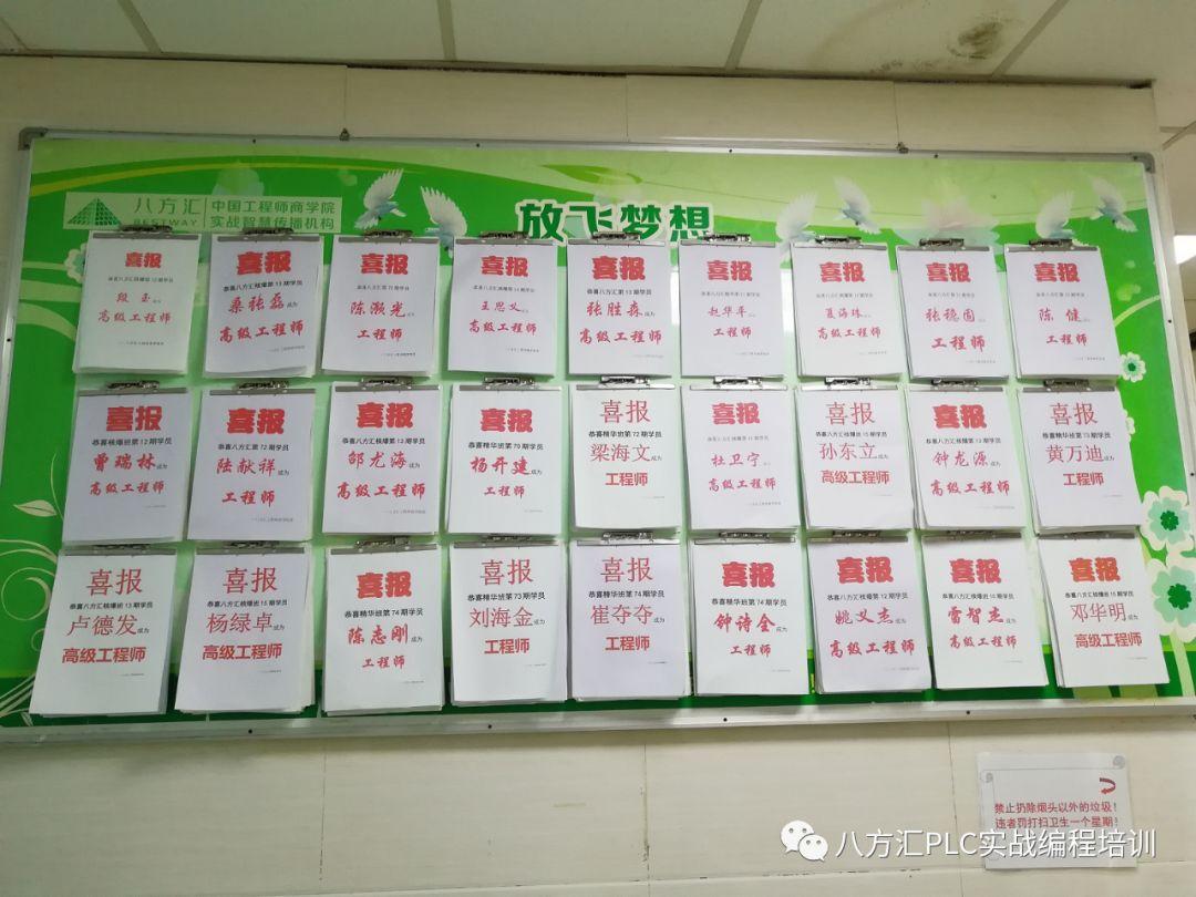 但是话说回来,没有培训之前,我是无论如何也不敢去找PLC编程的工作的。但是培训之后,身边的同期或者不同期的师兄弟都是以成为PLC编程工程师为目标,这一点也潜移默化了我的信念,特别是看到学校成功榜上那些已经成为工程师的师兄,更加坚定了我的信念,至少以前不敢做的事情,现在我也敢做了。当然,我也早已经是成功榜上的一员。