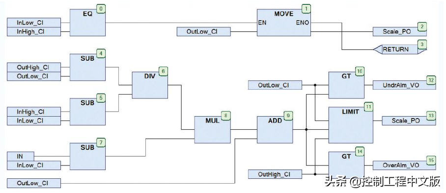 ▎ 图4:基于Codesys连续功能图语言,展示了一个基于块的编程设计 示例