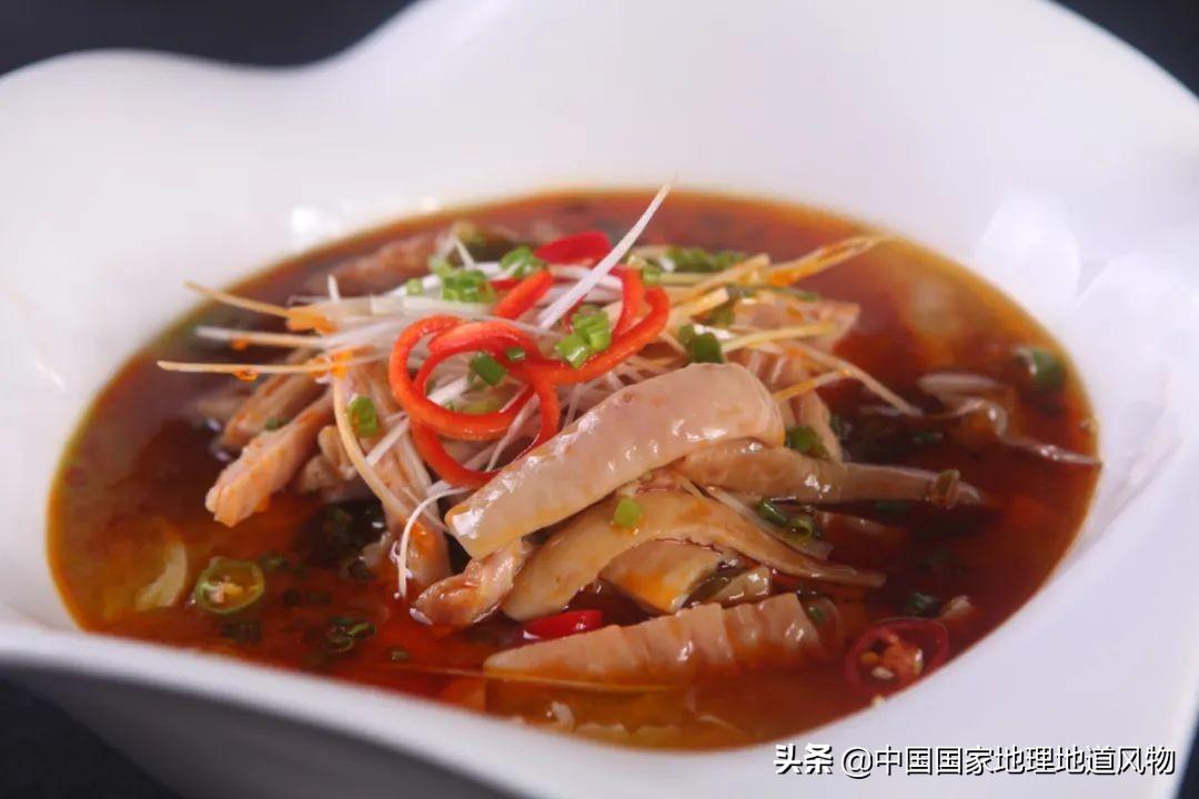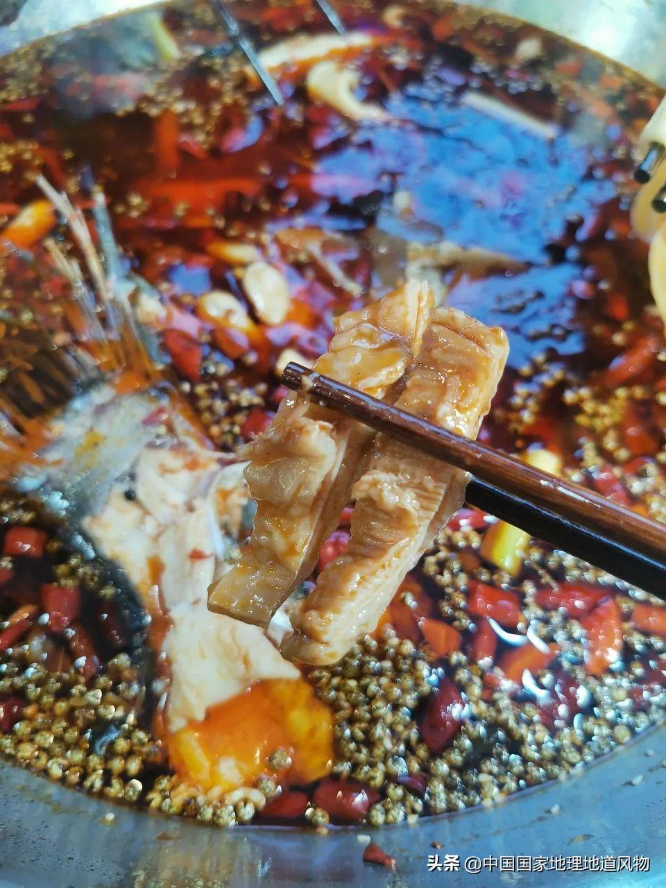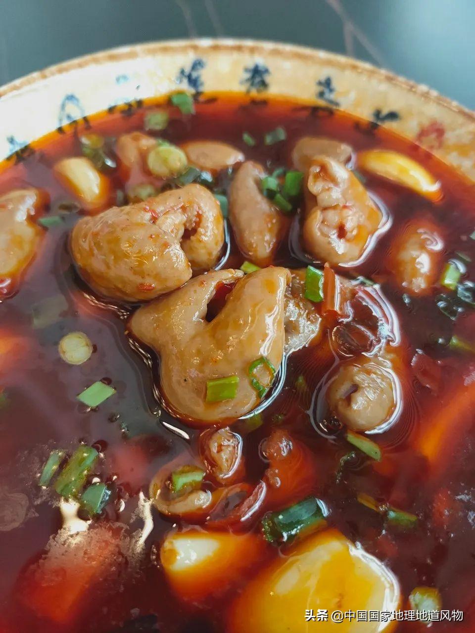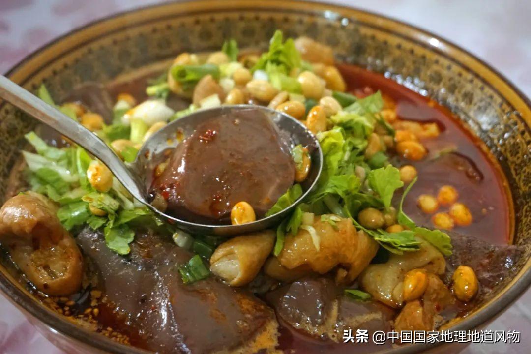 成都大邑县的肥肠血旺很出名 。肥肠嚼劲十足,血旺又鲜又嫩,里面还夹杂酥脆的黄豆粒。舀一勺肥肠、血旺和黄豆粒 ,送入嘴里之后,血旺一瞬间爆开,一口就包含了麻、辣、鲜、烫、嫩 ,只有送几口米饭,才能缓解这种味觉的大爆炸。