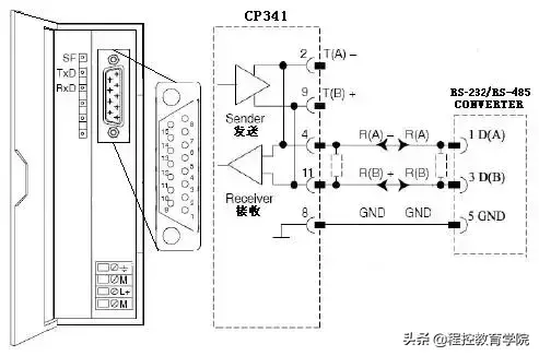 CP341上有三个状态指示灯,分别是:SF(RED)表示错误状态;TxD(GREEN)表示数据在传送;RxD(GREEN)表示数据在接收。通信正常时为TxD和RxD状态灯交替闪烁。