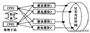 位于两个CPU上的分布式处理DP接口分别与1条PROFIBUS现场总线相连,实现CPU与现场I/O的冗余通信。两条PROFIBUS-DP网线同时与ET-200M站上冗余配置的IM153-2模块相连,这样输入输出信号通过冗余的IM153-2及PROFIBUS-DP网线同时与两个互为热备的CPU通信;当与主CPU通信的IM153-2模块出现故障时,系统并不实行CPU或PROFIBUS-DP网之间的切换,而是自动通过另一条DP网将数据送到相应的CPU上,并通过光纤热备线将数据由从CPU传送给主CPU。从而最大程度减少了CPU的切换(CPU切换时会产生CPU同步时间差),提高了CPU的运行效率。IM153-2模板可在线更换,PROFIBUS网也可以在线更换,易于修复系统。现地子站通信网络图如下图所示。
