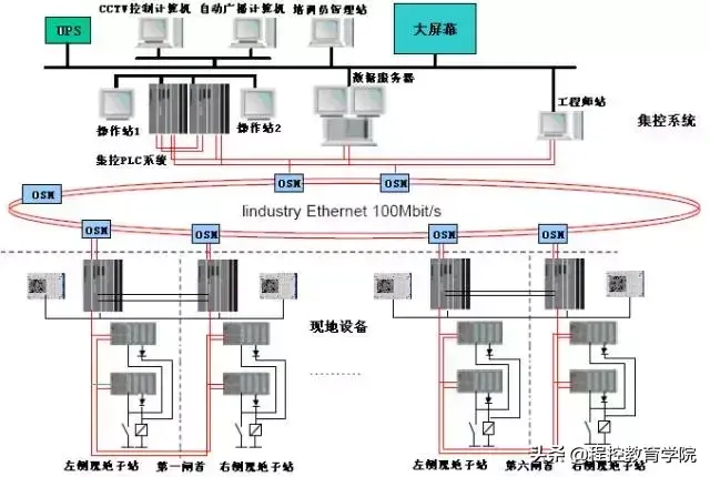 每线船闸的自动监控装置均由1套集中控制主站、12套现地控制子站及通航信号装置、广播指挥设备、船舶探测及工业电视监控管理装置和其他外围设备组成。集中控制主站由二个冗余S7-400 PLC组成,现地控制子站由12个冗余S7-400 PLC组成。排水控制系统、桥式起重机、防撞警戒装置由S7-300 PLC组成。