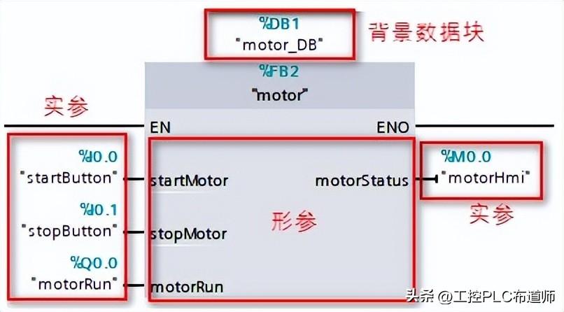 对于带参数的 FB 块,有形参和实参 2 个概念,如图 3 所示。