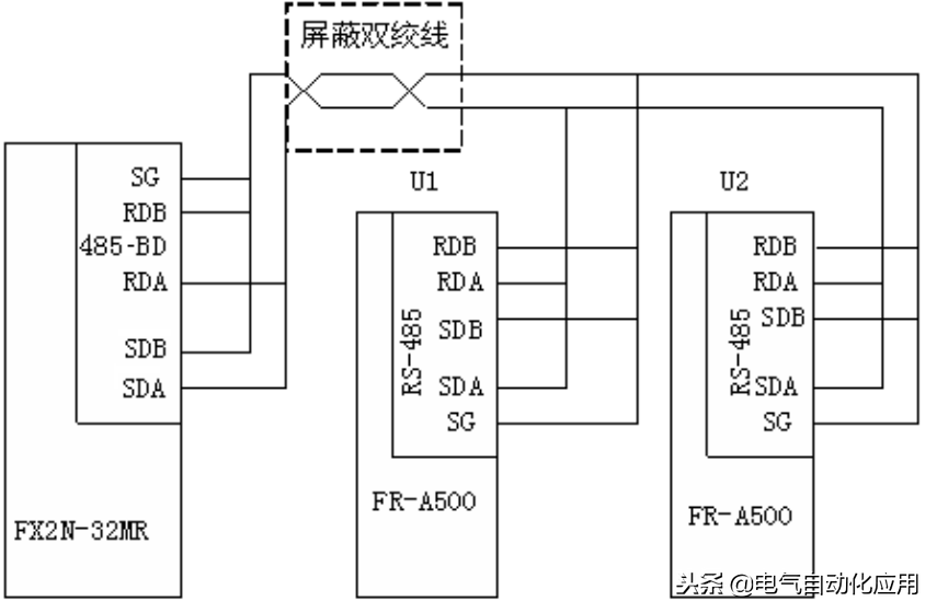 1 PLC采用RS-485的Modbus-RTU通信方法控制变频器。