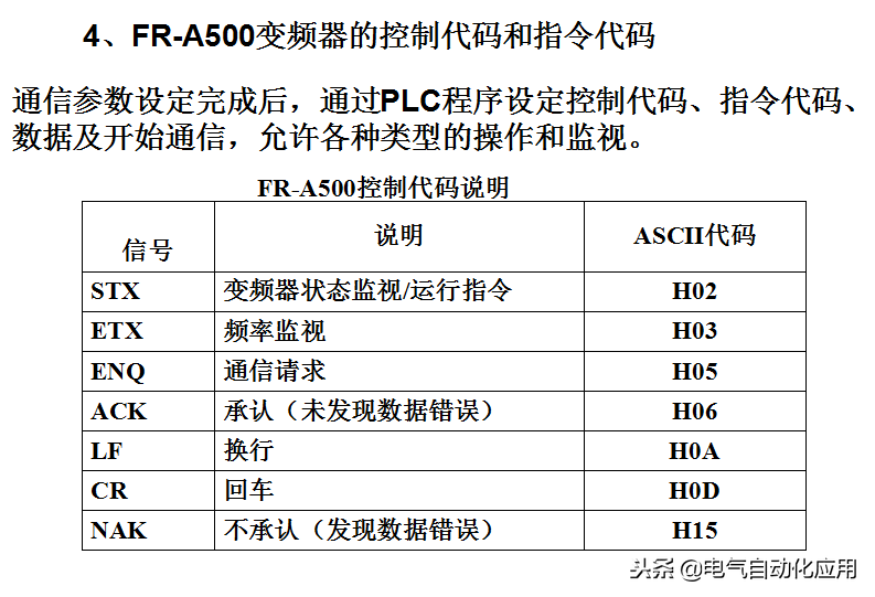 4、FR-A500变频器的控制代码和指令代码