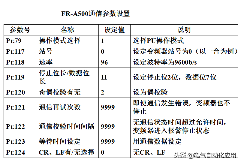 2、FR-A500变频器的通信参数设置