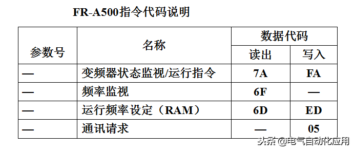 3、FR-A500变频器的数据格式