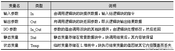 对于组织块(OB)来说,其调用是由操作系统管理的,用户不能参与。因此,OB只有定义在L堆栈中的临时变量。