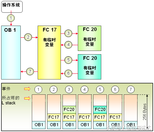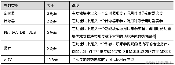 对于功能(FC),操作系统在L堆栈中给FC的临时变量分配存储空间。由于没有背景数据块,因而FC不能使用静态变量。输入、输出、I/O参数以指向实参的指针形式存储在操作系统为参数传递而保留的额外空间中。