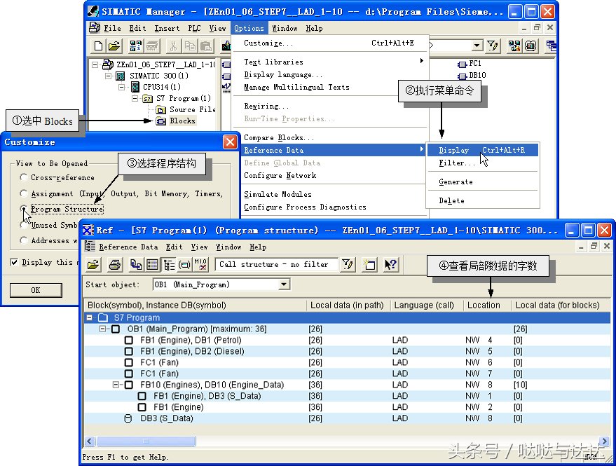 在调用FB块时,要说明其背景数据块。背景数据块应在调用前生成,其顺序格式与变量声明表必须保持一致。