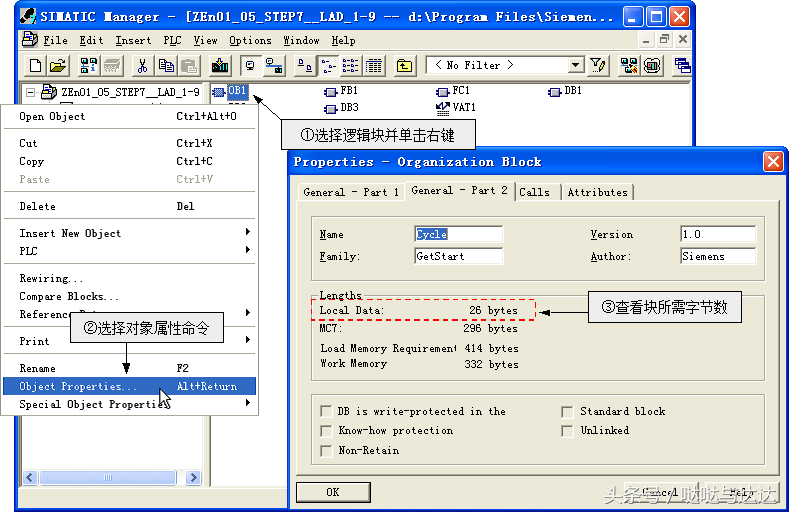 逻辑块(OB、FB、FC)由变量声明表、代码段及其属性等几部分组成。