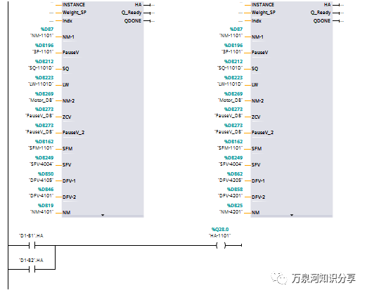 可到FB调用第二次的时候,就发现,工艺设计的,两次工艺调用的指示灯是同一个!其实我就是从那个时候开始被梯形图恶心到的。关注我文章的人可以找到以前的文章《【万泉河】成败梯形图》仔细研读。