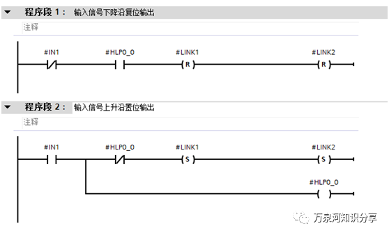 输入信号的上升沿时置位输出,下降沿时复位输出。效果上看起来是输出会等于输入信号。但本质上输入信号对输出不霸占。其它输入信号也可以用于控制同一个输出。