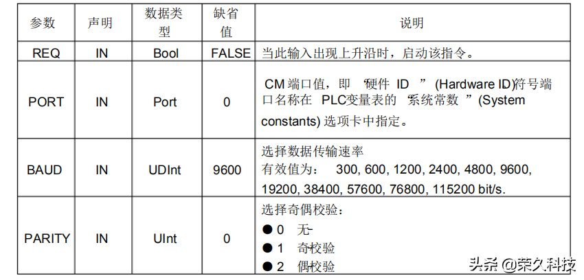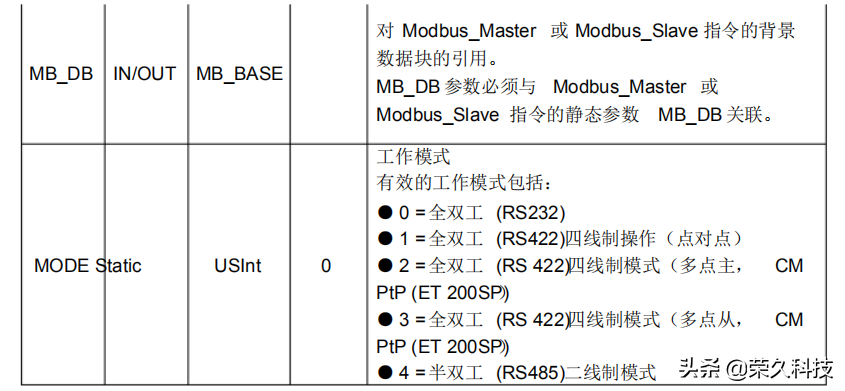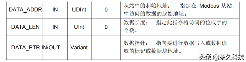 然后对 “ Modbus_Comm_Load ”指令进行参数化,由于该指令参数较多,在此只列出必须要关注的参数,如下表 4 所示,其它参数解释见手册或在线帮助。