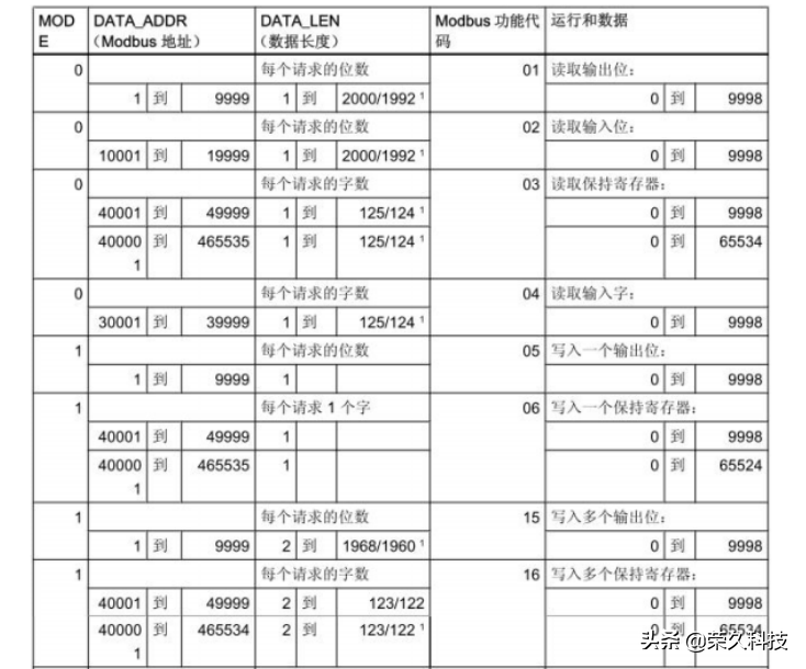“MODE ”: 0; // 与“DATA_ADDR ”参数一起决定 Modbus 功能码为 03