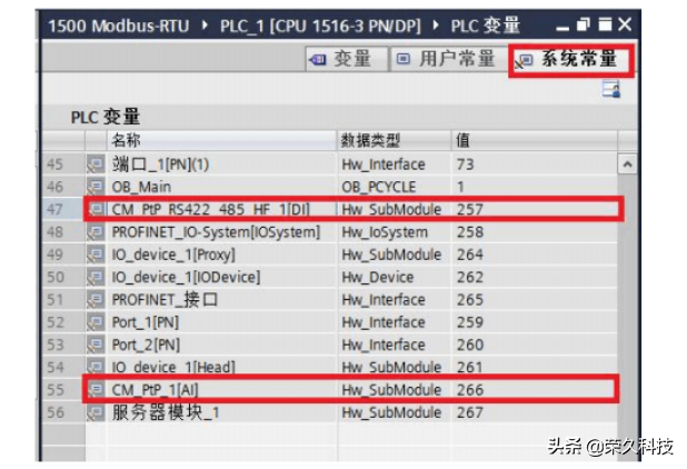 同样,该硬件标识符也可以在 “PLC 变量 —〉显示所有变量 —〉系统变量”下可以查看到,如下图 9。
