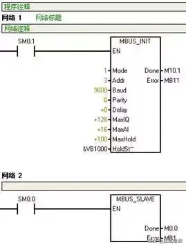 下面我们先将从站库指令下载到S7-200PLC中让S7-200PLC成为modbus RTU 从站具体从站参数设定可以参看图 2‑3。