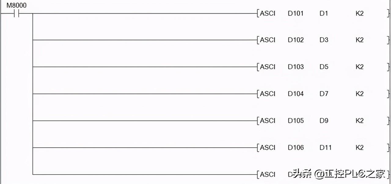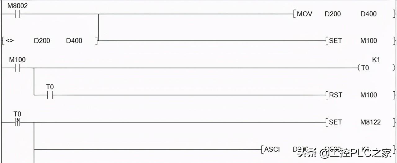 M8122是送信指令, 表示在发送信息,ASCI D200 D500 K4.D200为频率数据, 将D200数据转换成ASCII,例如D200=0ABCH,K4就表示D500=0,D501=A,D502=B,D503=C,只转换4位。