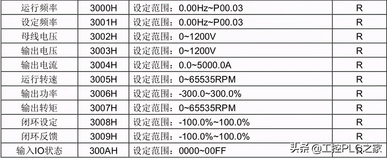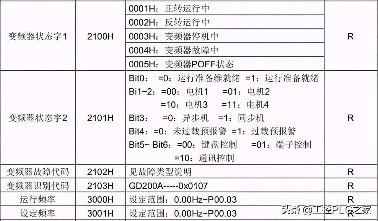 意思就是读取数据时,必须在送信、回信、写入指令意外完成。查看变频器功能表,读取频率的地址是3000H。