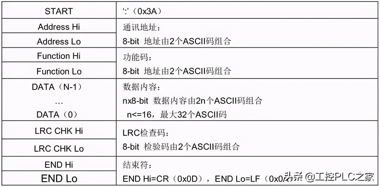 数据内容DATA:就是要写入或读取的数据内容, 由2n个ASCII码组成。