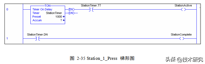 16. 在 Assembly->Program_1_Press->Station_1_Press 中,输入如图 2-35 所示梯形图逻辑。