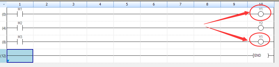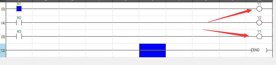 而一旦出现双线圈输出,在编辑的时候PLC也不会报错,但只有最后一个线圈起作用,前面的无论是否满足都没有任何作用。
