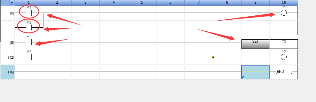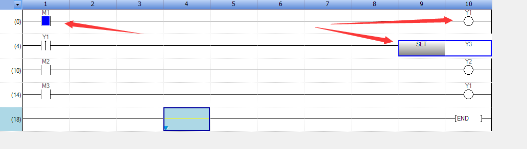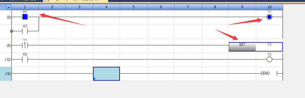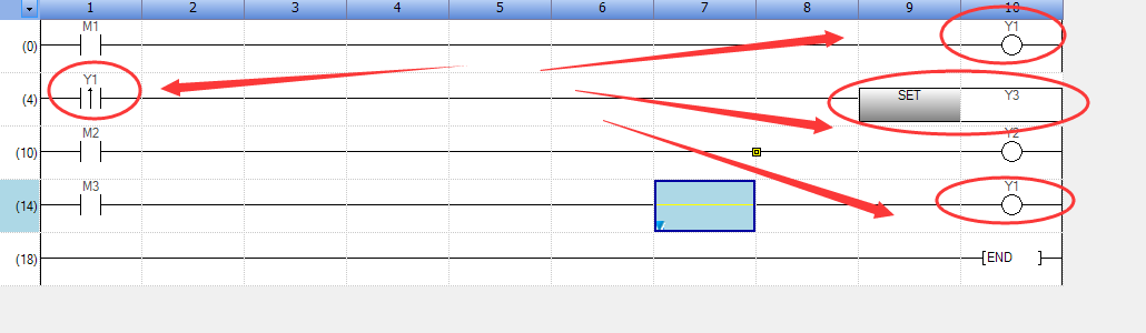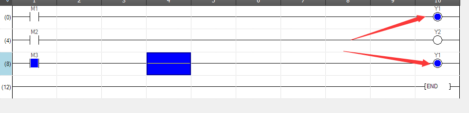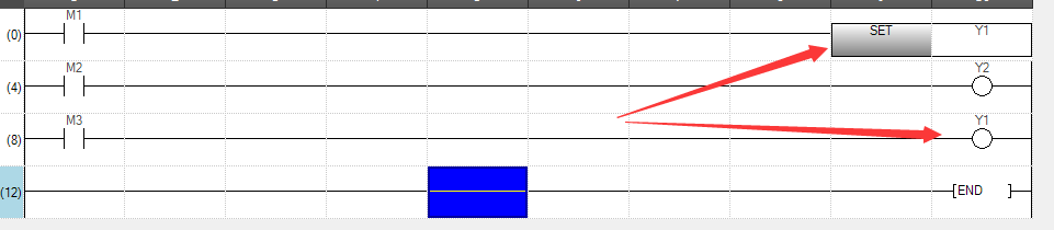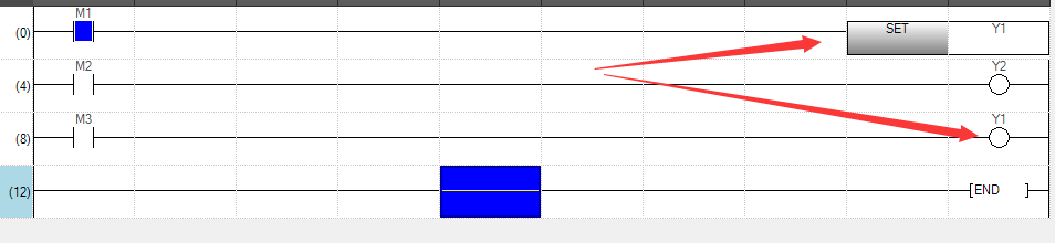 当M3条件不成立时,Y1的结果又发生了变化,当扫描到END 结束时,Y1 的结果是OFF
