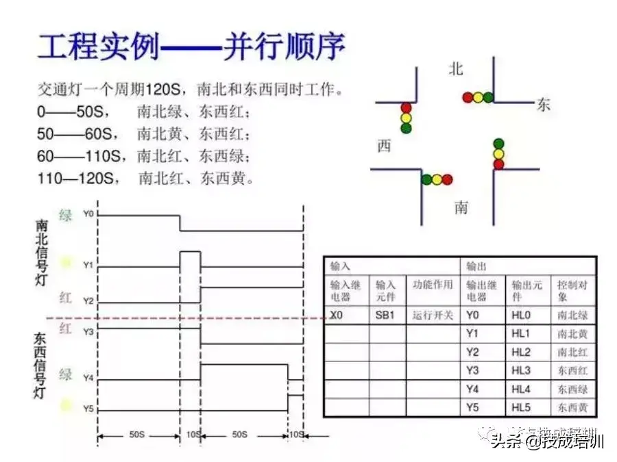 (5)以上南北、东西信号灯周而复始地交替工作状态,指挥着十字路口 的交通,其时序如下所示。