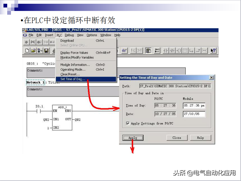 用PLC300计算电机累积运转时间的方法:假设测量周期约为一秒,可在被测信号的上升沿产生中断,在硬件中断组织块OB40中读取实时时钟的时间,记录中断的次数,计算从...