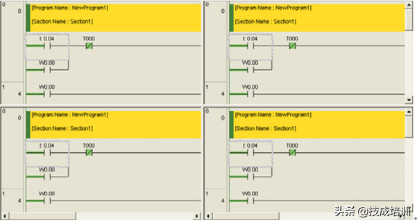 梯形图程序段窗口可被分割,允许在一个梯形图程序中显示多个位置,如图2-47所示,因此可以同时对它们进行检查。