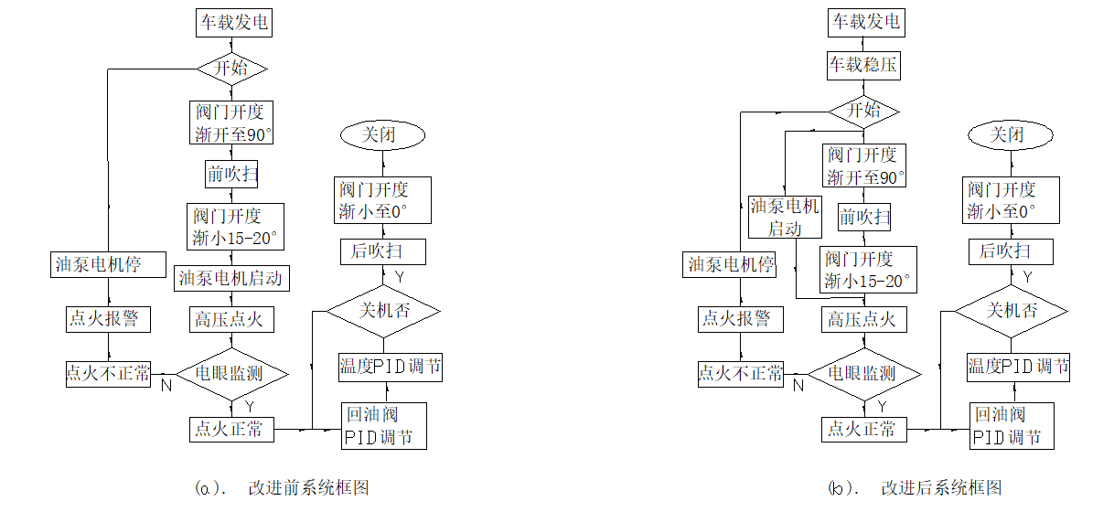 最后发现,车载发电系统,其输出功率3KVA,额定电流5..0A,由于没有稳压和稳流装置,在燃烧器吹扫后,且开始启动回流节流阀和油泵的一体电机,并开始供油时,启动电流达到5.5A,,急剧失压,导致车载发电系统不稳定,供油中断,电眼实时监测不到燃烧器起火时报警,点火则失败,至此使PLC燃烧器控制系统的不稳定。