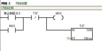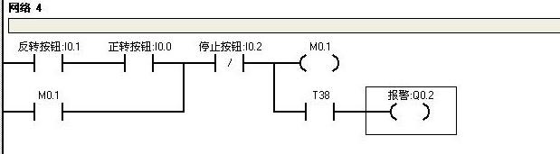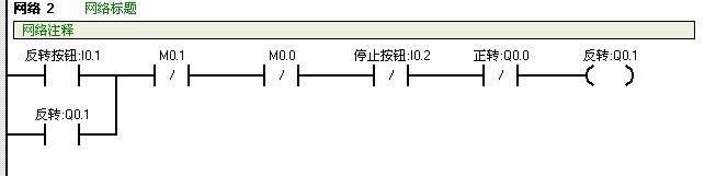 题意2要求按停止按钮5秒后才能改变电机方向,所以这里需设置一个标志位,这里用M0.0。