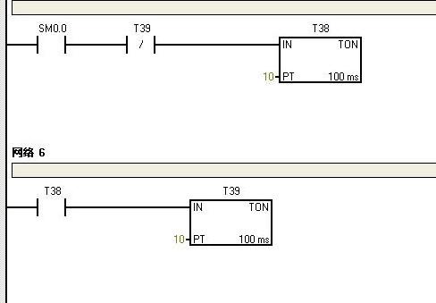 这次增加了网络4/5/6,网络5和6就是利用2个计时器产生一个一秒脉冲的小程序,SM0.0为特殊位,其功能为一直得电。网络4就是利用M0.1将网络1/2/3锁死,也就是说M0.1得电网络1.2.3是不起作用的。其原理与上一小结的M0.0一样。