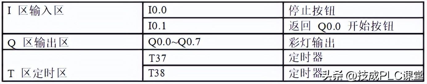 利用PLC的Q0.0到Q0.7八个输出端控制 八个彩灯,使其每隔一秒亮一个并循环 。当接通I0.0后所有的灯都熄灭。当接通I0.1后又重新从Q0.0开始循环。