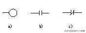 ▲图5 梯形图常用等效控制元件符号 a)线圈 b)常开触头 c)常闭触头