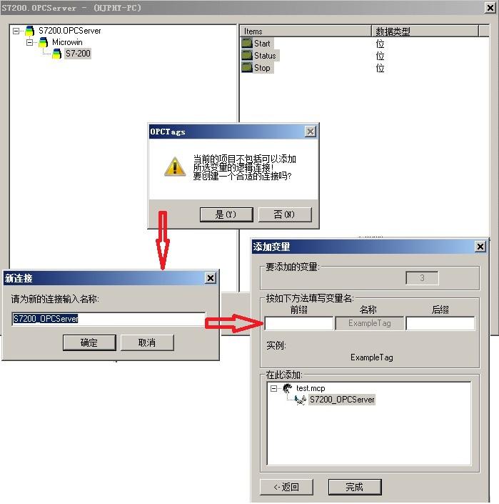 输入PLC的名称和网络地址以后,点击确认就成功新建了一个PLC连接。创建完成连接以后,我们继续在这个连接上创建我们需要的变量,如下图所示: