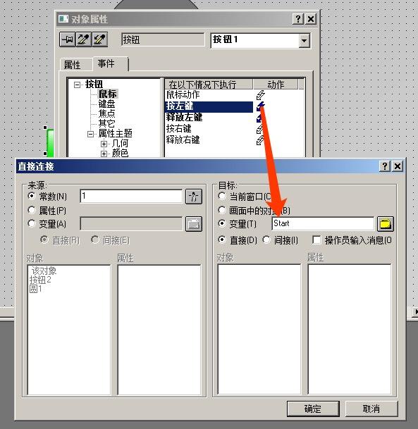 接下来,为这两个按钮绑定事件,当鼠标按下时,把对应的变量置为1,当鼠标释放时,把对应的变量置为0,如下图所示: