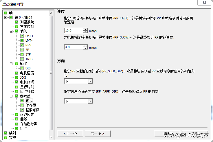 第十一步: (速度—回原点速度—10.0MM每秒—接近参考点速度—4.0—方向都是正)