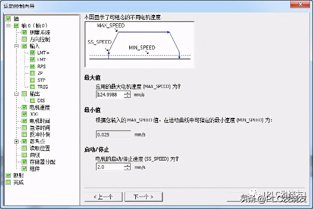 第八步: (最大值—最大电机速度—124.9988—最小值—0.025—启动/停止—2.0MM每秒)