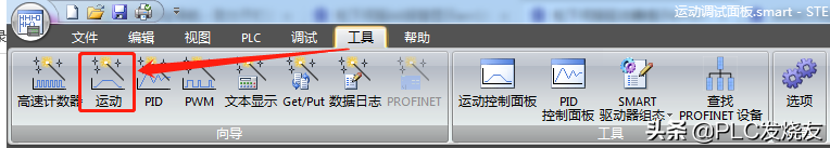 第一步: (STEP 7-MicroWIN SMART编程软件—左上角菜单栏—工具—运动)