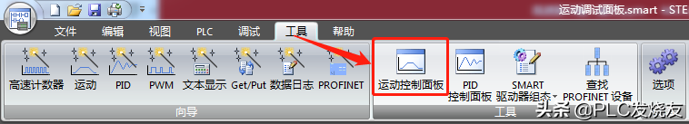 第三步: (STEP 7-MicroWIN SMART编程软件—左上角菜单栏—工具—运动控制面板)