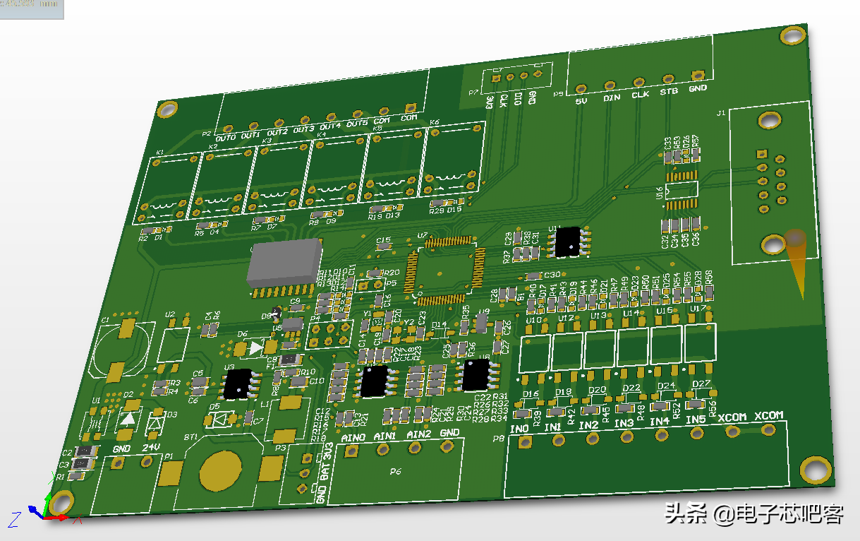 PCB设计 经过一番折腾,最后定稿的PCB设计如下图所示。
