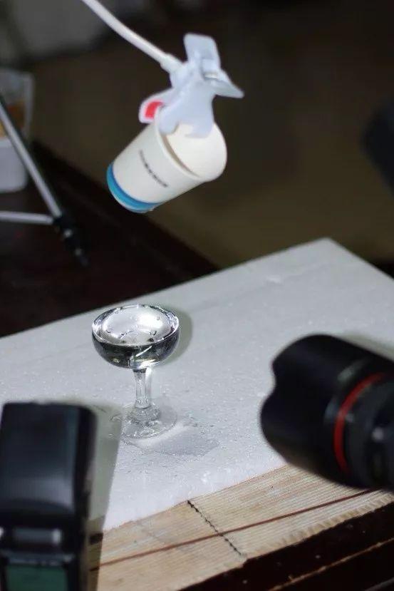 这是我第一次的简易拍摄场景,大家想尝试,自己就可以搭建。一个纸杯和一个玻璃杯就可以搭建了。