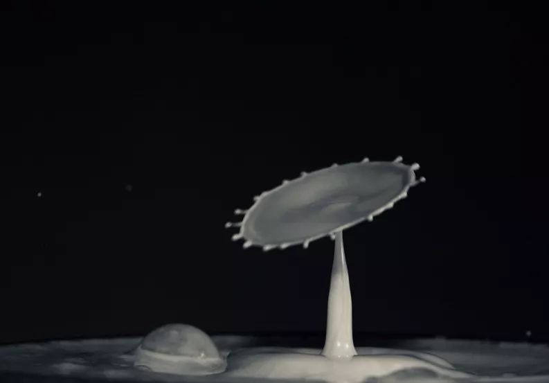 牛奶水滴二次碰撞形成的水冠: