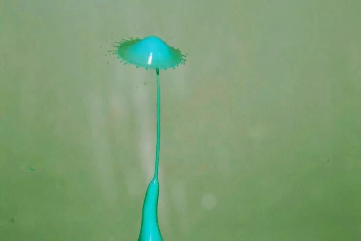 弹起的水柱与下落水滴碰撞形成的小伞: