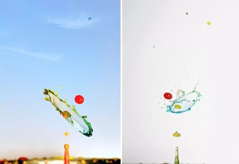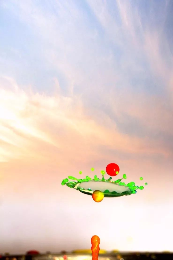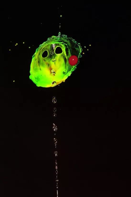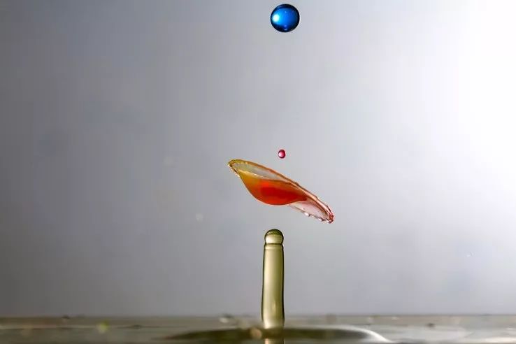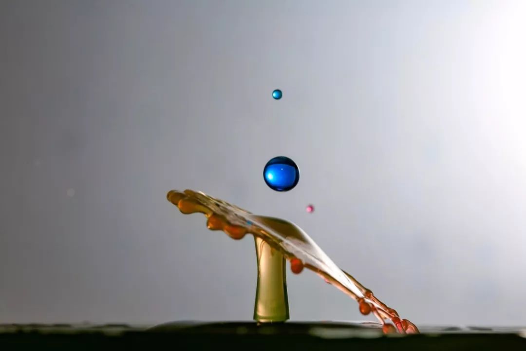 在进行三电磁阀水滴碰撞过程中,想拍摄成功完美的多伞碰撞,尝试了多次都没有成功。这里就用到了闪光灯独立输出控制,第二滴碰撞时闪灯触发,第三滴碰撞时再次触发其他组闪光灯。整个过程时间非常难控制。最终拍摄到的大部分只有一把伞形的效果。