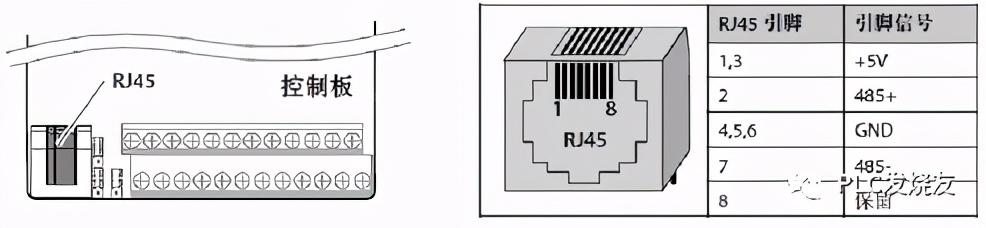 电源接L1与L3N(220V)、电源L1/L2/L3N(380V)2.使用RJ45网线水晶头来根据如下图所示来接线,对于PLC是3正8负,变频器是2正和7负。