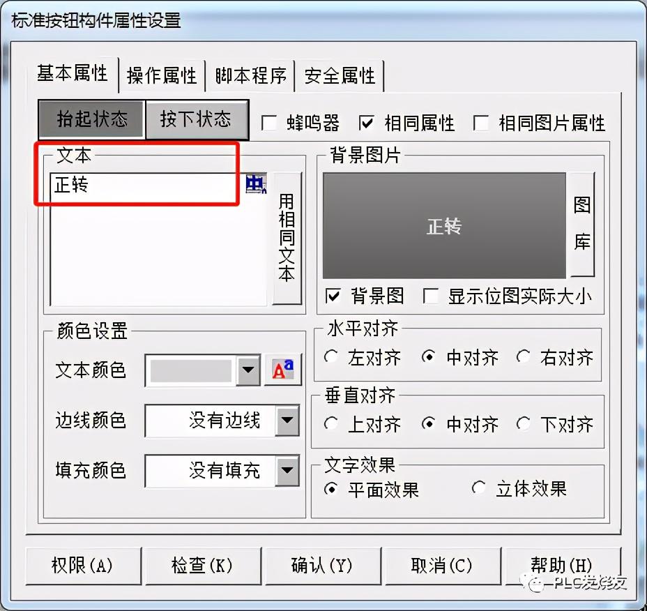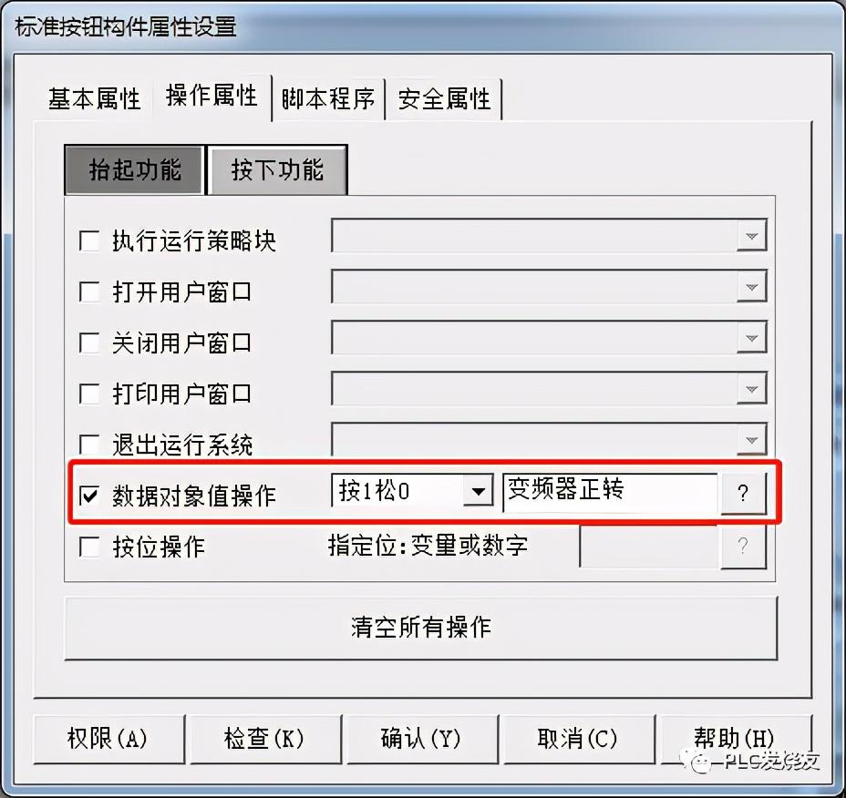 第六步:(标准按钮—基本属性—设置名称—操作属性—关联PLC地址)